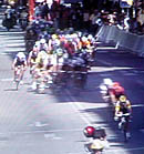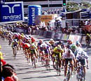 peloton rolling at goold clip with tailwind, averaging 48km/h,