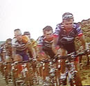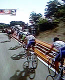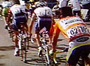 Galdeano has problems, is sidelined until he can change bikes. He does so & rejoins peloton & Once teamates.