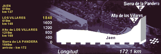 After imense success in the last edition of the Vuelta, the city of Jeàn and Unipublic agreed to bring the tour once again to the Lierra de la pandera in 2003. This year the stage falls on a Sunday and will be the fouth to finish in the mountains; gaging by past events, this kind of finish remains extremely popular.