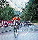 nouvelle attaque de Cardenas au sommet de la montée de Cauterets pour distancer aux points son compagnon d'échappé et rival Perez aux points. dans le groupe intercalé derrière Rasmussen et le groupe Heras.