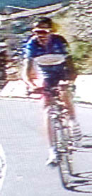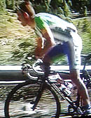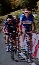 Rasmussen & Frigo in lead, 1km from finish. Summit in view,