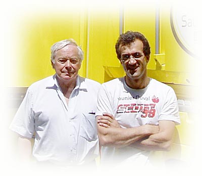 Devant le bus de la SAUNIER DUVAL, André METTRAUX