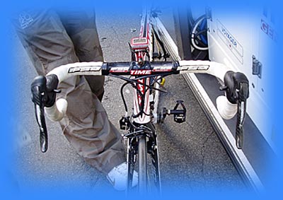 Au premier plan le vélo de Pierrick FEDRIGO ( En