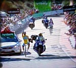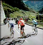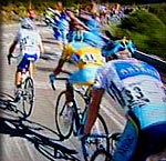 puis tout le peloton et plusieurs coureurs placent un contre