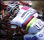 Il est poursuivi par le peloton, ici Van Impe de la quickstep