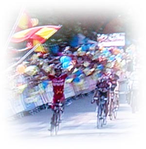 Entreée dans Puertollano des 3 coureurs de tête