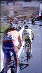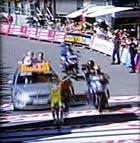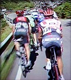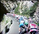 ici par le peloton au devant duquel les grimpeurs apparaissent.