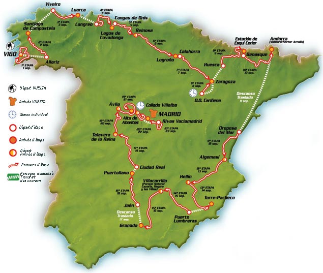 Tour d'Espagne Cycliste 2007 comporte 21 étapes, dont