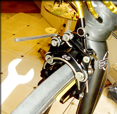 Etriers EEbrakes en cours de montage sur le Ruegamer ZEN U
