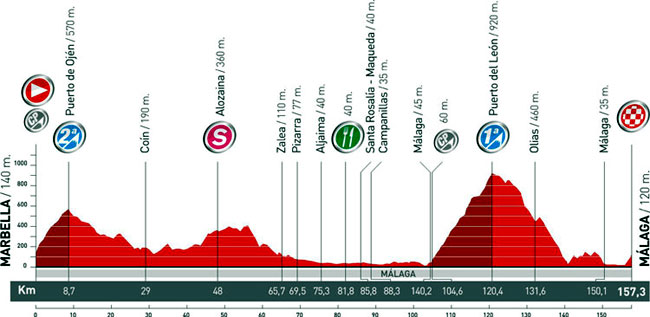 d'arrivée de 1,8km au chateau de Gibralfaro de