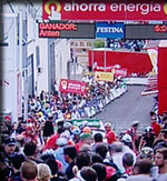 Le peloton dans l'ascension du Montefrio est encore compact,