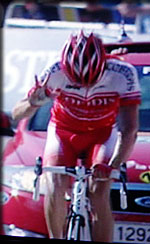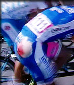 du peloton, ici c'est Thor Hushovd qui lache prise