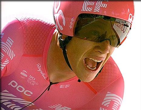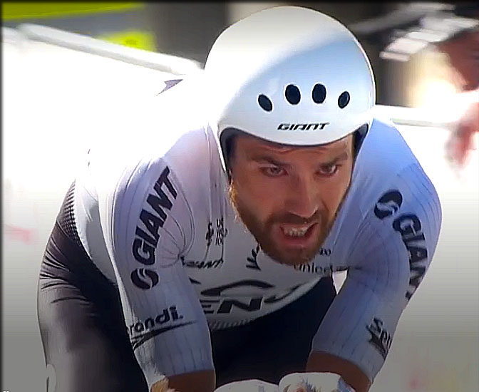 Patrick BEVIN, ( CCC ), le champion de Nouvelle Zélande, meilleur temps mais avec juste 2" sur Cavagna