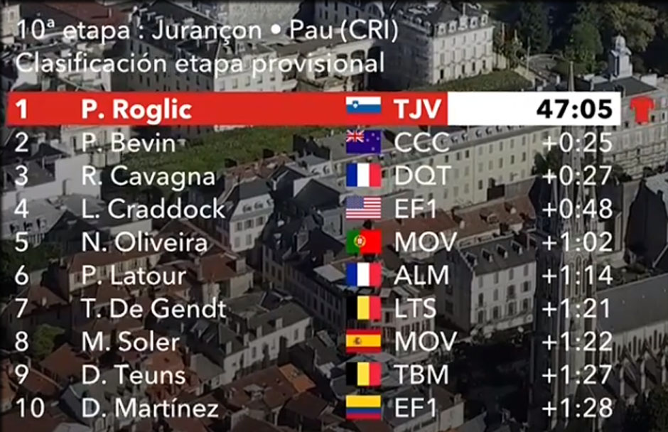 Aujourd'hui, 10ème étape de la vuelta 2019 : Jurançon - PAU contre la montre individuel 36,2km