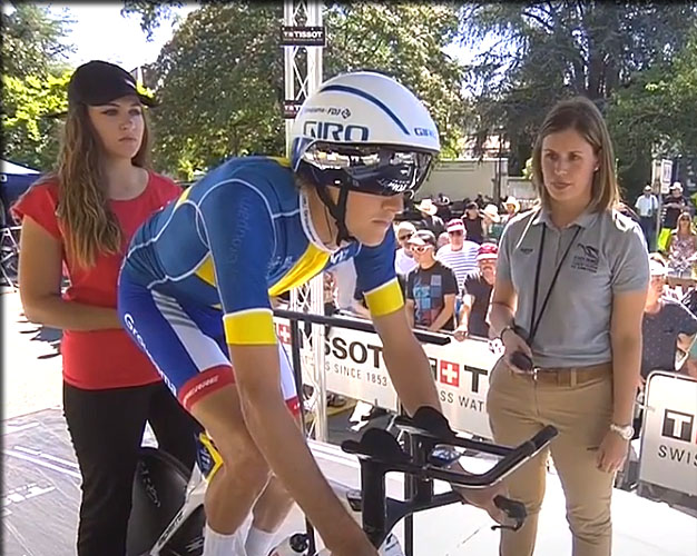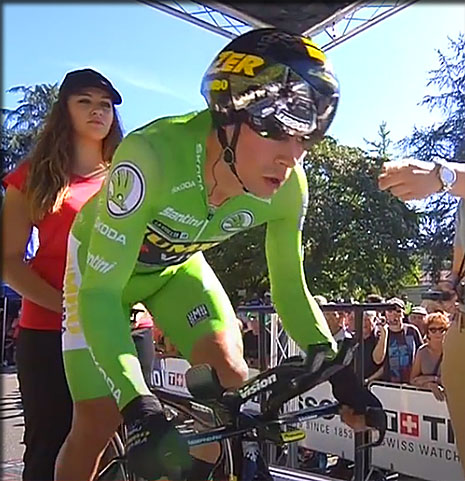 Le grand favori de ce chrono Primoz ROGLIC s'élance - Nairo Quintana, dernier coureur à partir s'est aussi élancé