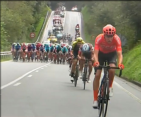 Le peloton des favoris dans les pentes raides qui surplombent BILBAO