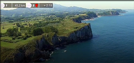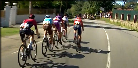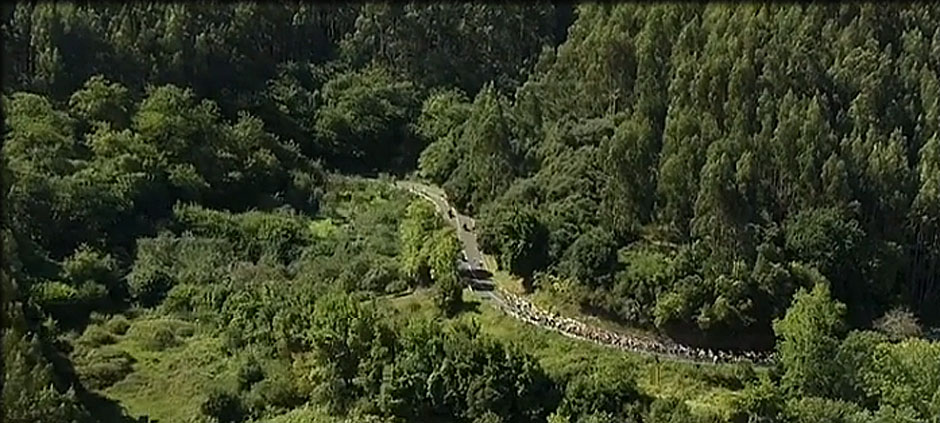 Peu de vent, mais une multitude de petites bosses - Ecart 1' 45" - on dirait bien que les sprinters se sentent de taille à passer le dernier repecho : une bosse de 3 ème catégorie juchée à 350 m d'altitude, l'alto de la Madera , 8 km mais à 3,5% seulement