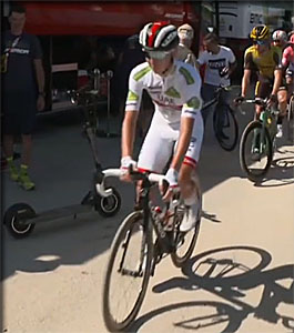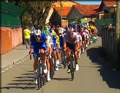 On apprend que les 700 derniers mètres comportent des passages à 9% et le retse n'est pas du tout plat comme l'annonce le roadbook. Ah bon !: serait-ce une raison pour laquelle le peloton controle l'échappée comme le lait sur le feu ?