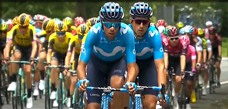 - En tête du peloton les Movistar veulent tester POGACAR qu'il savent avoir été touché à la hanche et au coude hier dans la chute au final de l'étape