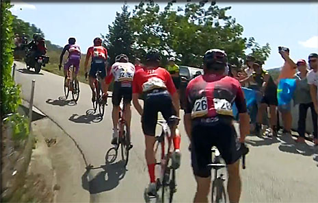 Le peloton s'est réduit à 30 ou 35 coureurs dés le premier col, dans la descente