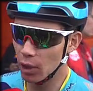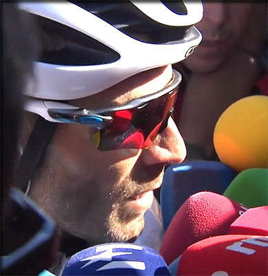 Valverde qui était tombé hier s'est juste couché sur les autres avec une petite douleur au poignet mais il dit que ça va bien au début de l'étape