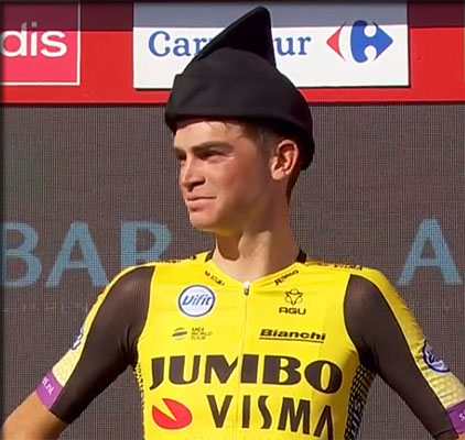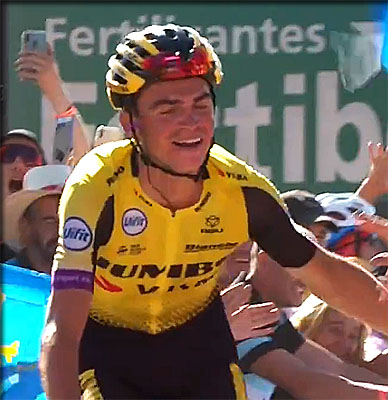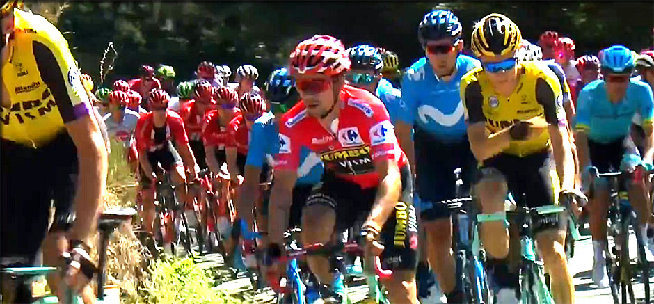 Cette étape promettait de possibles grandes maneuvres parties de loin, ça n'a pas du tout été le cas. Est-ce que la vingtaine de km de plat précédant le puerto final y est pour quelquechose ? certainement oui, car on ne peut pas imaginer que Roglic ne soit pas attaqué dans cette étape ponctuée par une ascension taillée pour de vrais grimpeurs avec des pourcentages autour de 10% qui leur conviennent.