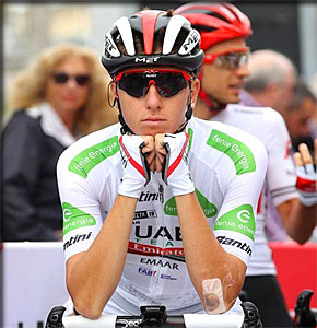 A la flamme rouge Seep KUSS est à deux doigts de la victoire à 24 ans . il a 50 " d'avance