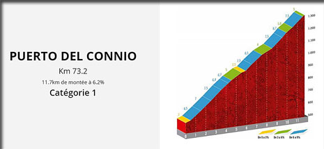 Résultat au sommet du Puerto del Connio (1re caté, km 73,2)