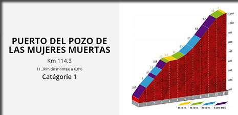 Résultat au sommet du Puerto del Pozo de las Mujeres Muertas (1re cat é, km 114,3)