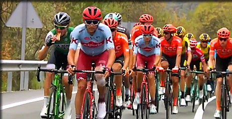 Roglic est peut-être touché. Il est derrière un groupe d'ASTANA et revient seul sur eux