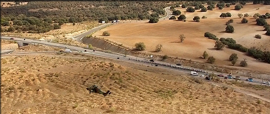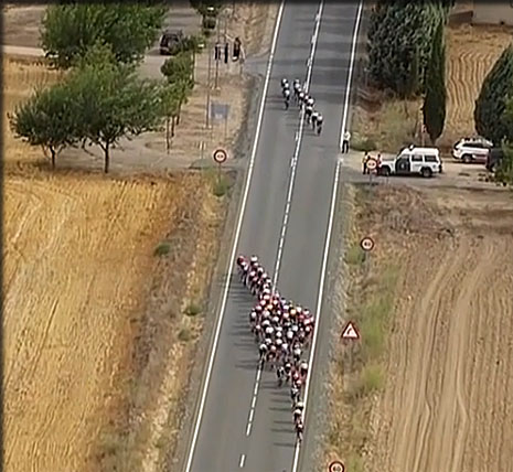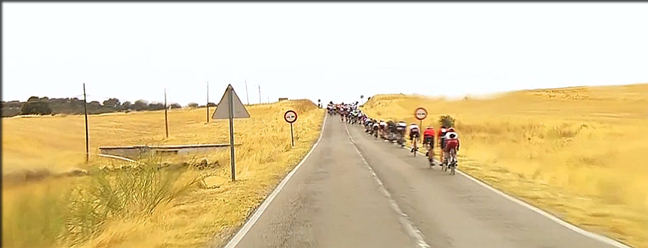 Le peloton sort de la COMUNIDAD de MADRID , pour rentrer dans la Province de TOLEDE ou les routes seront bien plus dégagées et propices à des bordures.