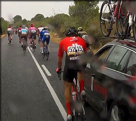 Lorsque Declerq roulait à l'avant du peloton revenant sur les 9 échappés , Cavagna n'avait pas vraiment à rouler, car les chances les plus grandes étaient pour Philippe GILBERT et STYBAR , et les 9 le savaient , mais lorsqu'il s'est relevé en tête de peloton , CAVAGNA était libéré et il a attaqué, aucun reproche à lui faire, contrairement aux MOVISTAR car eux ils vont se faire tailler un costard sur mesure par tout le monde dans le milieu du vélo.