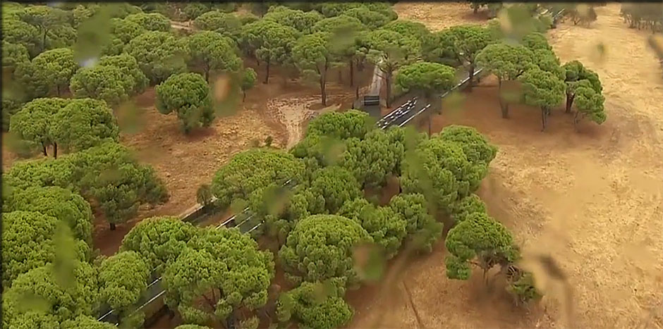 Dans les arbres, les coureurs restent protégés du vent, mais bientôt, les arbres ... c'est fini ! ce sera la Mancha nord ouest
