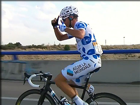 Les deux coureurs Espagnols des équipes invités Dani MARTINEZ et Diego RUBIO , savourent la griserie d'arborer les maillots d'équipes espagnoles dans leur capitale