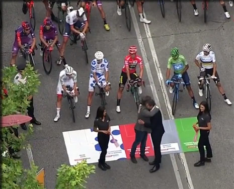 - Podium de Roglic devant la foule Madrilène - Accolade entre ROGLIC et POWLESS