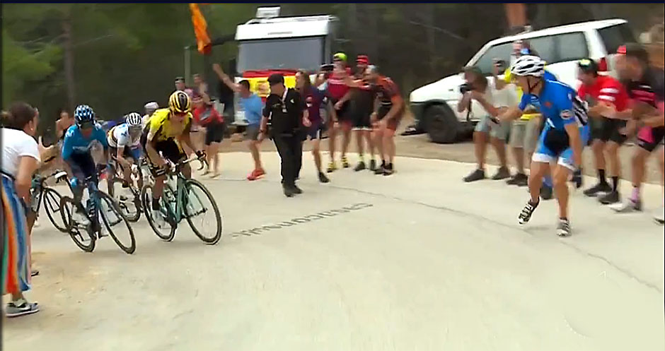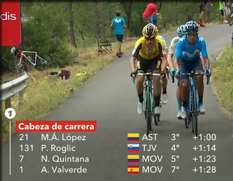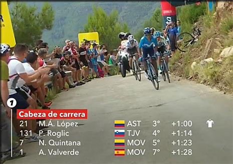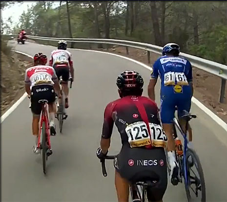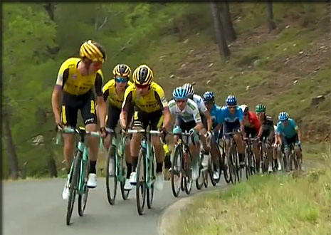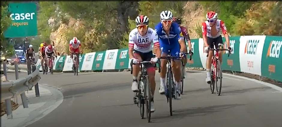 Roglic , Lopez Quintana, Valverde dans un virage très raide