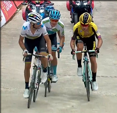 On peut s'attendre à un nouveau changement de leader ce soir car la partie a été rude hier dans le final pour TEUNS qui a roulé seul à l'avant sans l'aide de HERRADA pour porter le maillot rouge à la fin de l'étape.
