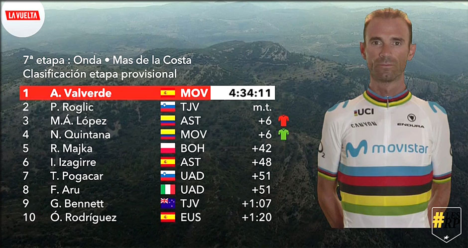 Miguel Angel LOPEZ reprend le maillot rojo pour 6" devant ROGLIC