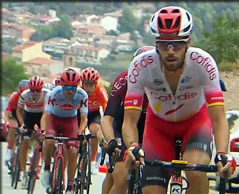 Quand on vous disait que la Vuelta est pleine de suprises, cette fois la pluie s'étant invitée, le peloton a mis la pédale douce, du coup Nicolas EDET est leader avec 3 minutes d'avance sur Lopez et 2'21" sur Teuns. La Cofidis savoure