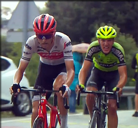 Hagen, Arunburu , sprintent très bien et passent aussi les bosses ...mais eux ils sont dans le groupe d'échappés qui a toutes ses chances ...