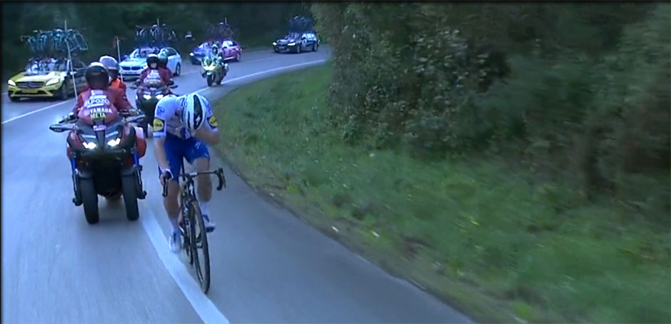 Cependant,le coureur Lethon Emils Liepins devrait aussi avoir une pénalité, pour avoir exaspéré et finalement poussé à la faute Sam Bennett hier lors du sprint final. Il n'est pas en usage dans les courses cyclistes arrivant au sprint de vouloir déposséder le sprinter d'une équipe de son train lorsque celui-ci est bien place avant l'arrivée, ce qui était exactement le cas.