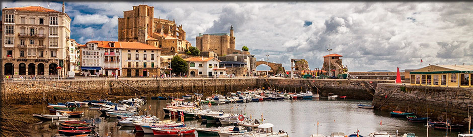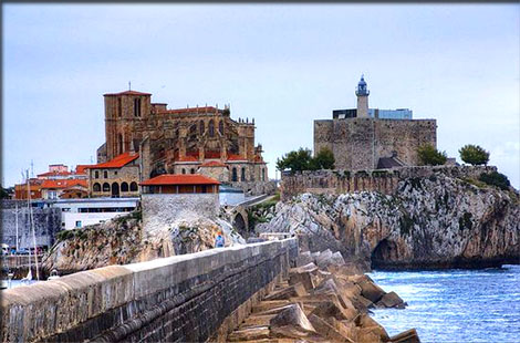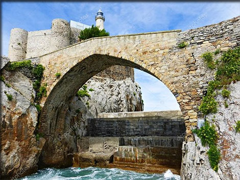 Castro de Urdiales le fort, la cathedrale et le port Pont romain.jpg