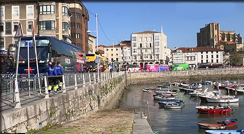 Les cars des équipes à CASTRO de URDIALES devant le port