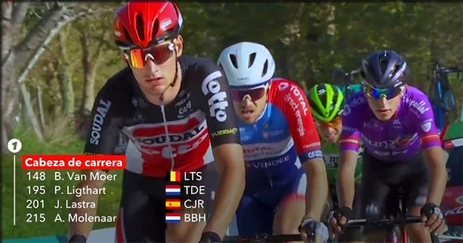 Quentin Jauregui (AG2R La Mondiale) et Jonathan Lastra (Caja Rural-Seguros RGA) sont à 12'' du quatuor de tête.