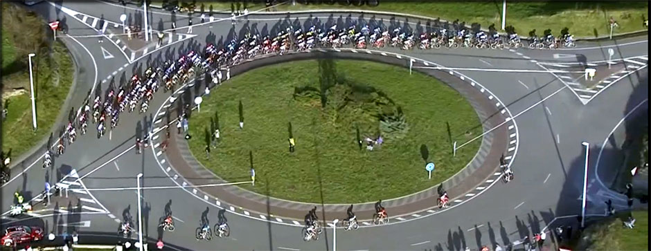 Le peloton est en file indienne - Ecart moins de 7 minutes
