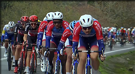 Sous l'impulsion des Total direct energie, le peloton récupère 30", ils vont plus vite que les Astana.