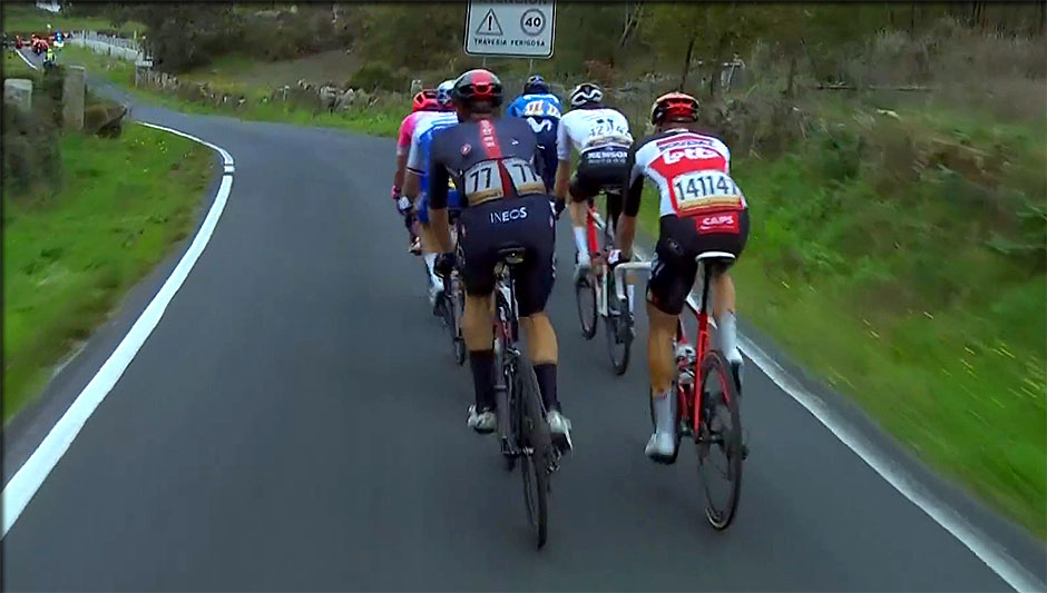 Les 7 valeureus échappés s'engagent sur la route de la 2ème ascension, l'alto de la Guitara