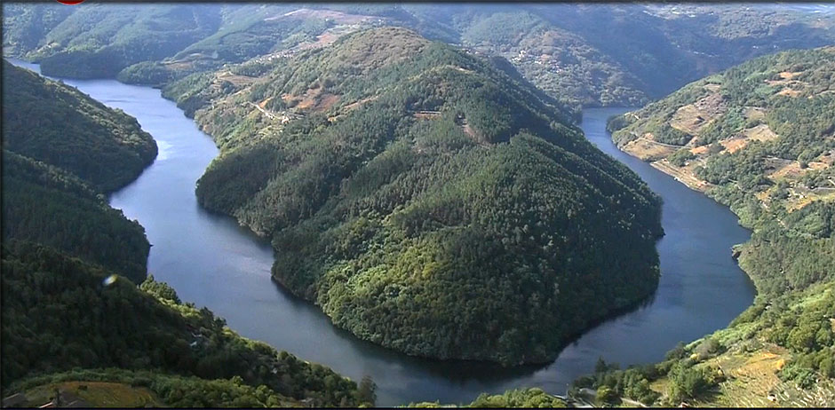 Les coureurs sont en bas de la vallée longeant le fleuve - l'écart redescend à moins de 3 minutes au passage du puente Viejo de OURENSE avant de faire une boucle pour atteindre l'arrivée