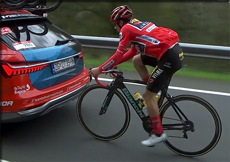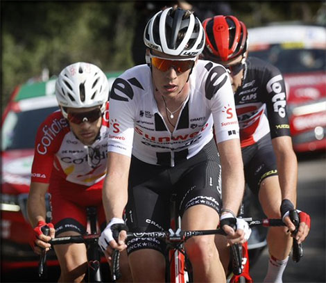 Abandon de Martin SALMON ( Sunweb) distancé dans les bosses de la 1ère partie d'étape, il a fini par abandonner la poursuite ... et la vuelta