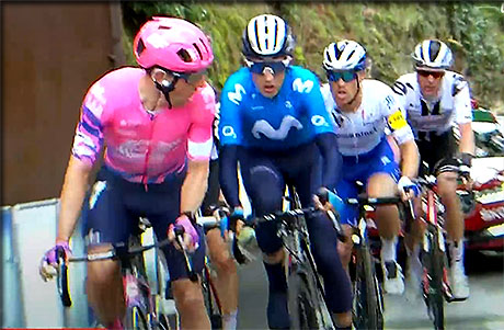 Carlos Barbero (NTT) qui lache prise et est repris par Lennard Hofsted (Jumbo-Visma) Ion Izagirre (Astana)